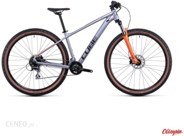 rama Aluminium Lite, AMF, Double Butted, Internal Cable Routing, Tapered Head Tube, Flat Mount Brake, SIC Mount, FM Kickstand Mountkolor silver´n´orangerozmiary Size Split: 27.5: XS (14″), S (16″) // 29: M (18″), L (20″), XL (22″), XXL (24″)widelec SR Suntour XCT Disc, 100mm, Lockoutstery CUBE FPH868, Top 1 1/8″, Bottom 1 1/2″, Semi-Integratedwspornik kierownicy CUBE Performance Stem Pro, 31.8mmkierownica CUBE Rise Trail Bar, 680mmgripy ACID Reactprzerzutka tył Shimano RD-M360, 8-Speedprzerzutka przód Shimano FD-M315, Top Swing, 31.8mm Clampmanetki Shimano SL-M315, Rapidfire-Plushamulec Clarks M2, Hydr. Disc Brake, PM/PM (160/160)mechanizm korbowy Shimano FC-M315, 36x22Tkaseta Shimano CS-HG31, 11-34Tłańcuch KMC Z8.3obręcze CUBE ZX20, 32H, Discpiasta przód CUBE Alloy Light, QR, 6-Boltpiasta tył CUBE Alloy Light, QR, 6-Boltopony Schwalbe Smart Sam, Active, 2.25pedały CUBE PP MTBsiodło Natural Fit Venec Litesztyca podsiodłowa CUBE Performance Post, 27.2mmzacisk podsiodłowy CUBE Varioclose, 31.8mmCałkiem nowy, przeprojektowany na rok 2022, Aim ma elegancki wygląd dzięki gładkiemu spawaniu rury czołowej i złącz rury podsiodłowej. Ma gwintowany suport i wewnętrzne prowadzenie kabli, co zapewnia długotrwałą bezawaryjność i ułatwia serwisowanie. Dodatkowo charakteryzuje się płaskim mocowaniem tarczy hamulcowej, połączonym z mocowaniem podpórki oraz zintegrowanymi punktami mocowania błotników i bagażnika ACID. Nowa geometria obejmuje obniżoną rurę główną, która zapewnia pewniejsze prowadzenie i dużo przestrzeni na szerokie, przyczepne i wygodne opony 2,25 cala. Poszerzyliśmy też zakres systemu SizeSplit, więc bez względu na wzrost znajdziesz dla siebie idealny rozmiar.