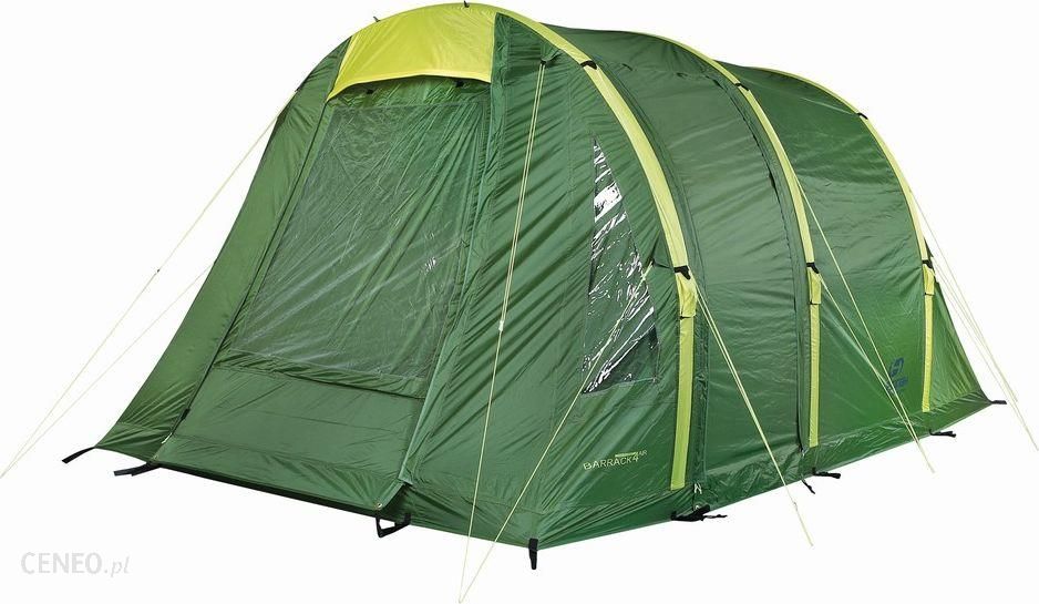 Przestronny namiot rodzinny Hannah Barrack 4 AIR bazuje na udanym modelu Barrack 4 i jest uzupełniony o nową technologię AirTube dla łatwiejszej konstrukcji. Jest idealnym schronieniem wakacyjnym na dłuższy pobyt na kampingu. Jest jedna sypialnia dla czterech osób do wygodnego spania. Część dzienna z jednym oknem oraz frontowym i bocznym wejściem z częściową wentylacją.Konstrukcja wewnętrzna / kształt tunelu / system AirTube / 2 otwory wentylacyjne / słupki mocowane metalowym śledziem / składane do kieszeni / 2 wygodne kieszenie / praktyczne kieszenie do przechowywania w części mieszkalnej / metalowe śledzie do namiotu / zintegrowana podłoga w części mieszkalnej / słupki do zamiana wejścia na daszek / małe przyciemnione okienkoKonstrukcja: Technologia rur powietrznychWaga: 16 kgOpakowanie: 35×68 cmTropik: 185T Poliester R/S PU 3000 mm WRNamiot wewnętrzny: 185T poliesterPodłoga: PE 10 x 10 120 g/m2Stelaż: rura powietrzna